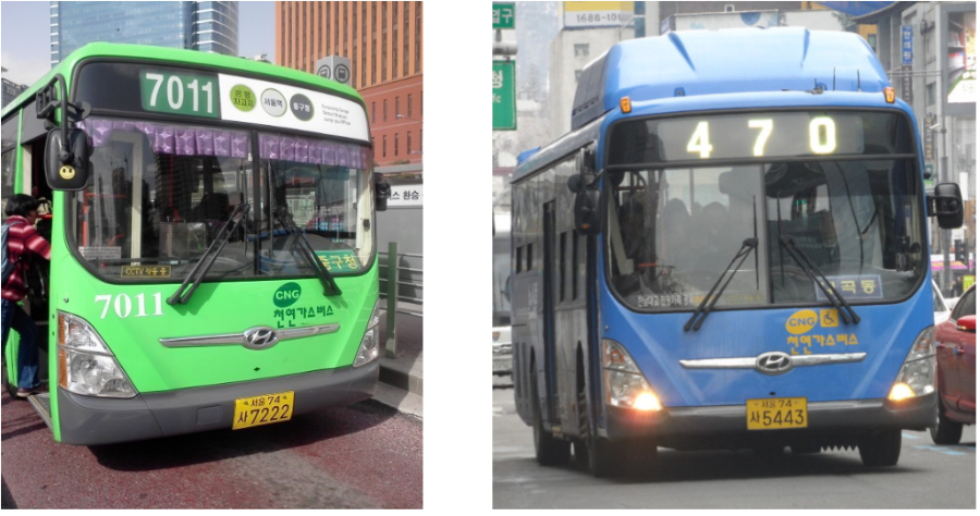 *사진의 버스들은 서울시 면허 시내버스이므로 서울 외에서도 '기후동행카드'로 승/하차 가능함.