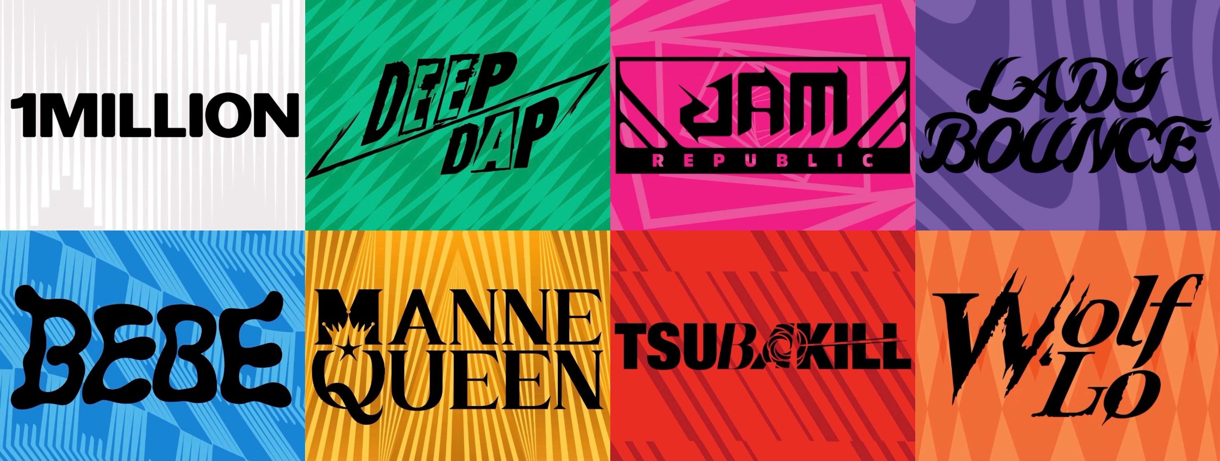 원밀리언(1MILLION), 베베(BEBE), 딥앤댑(DEEP N DAP), 잼리퍼블릭(JAM REPUBLIC), 레이디바운스(LADYBOUNCE), 마네퀸(MANNEQUEEN), 츠바킬(TSUBAKILL), 울플러(Wolf‘Lo)