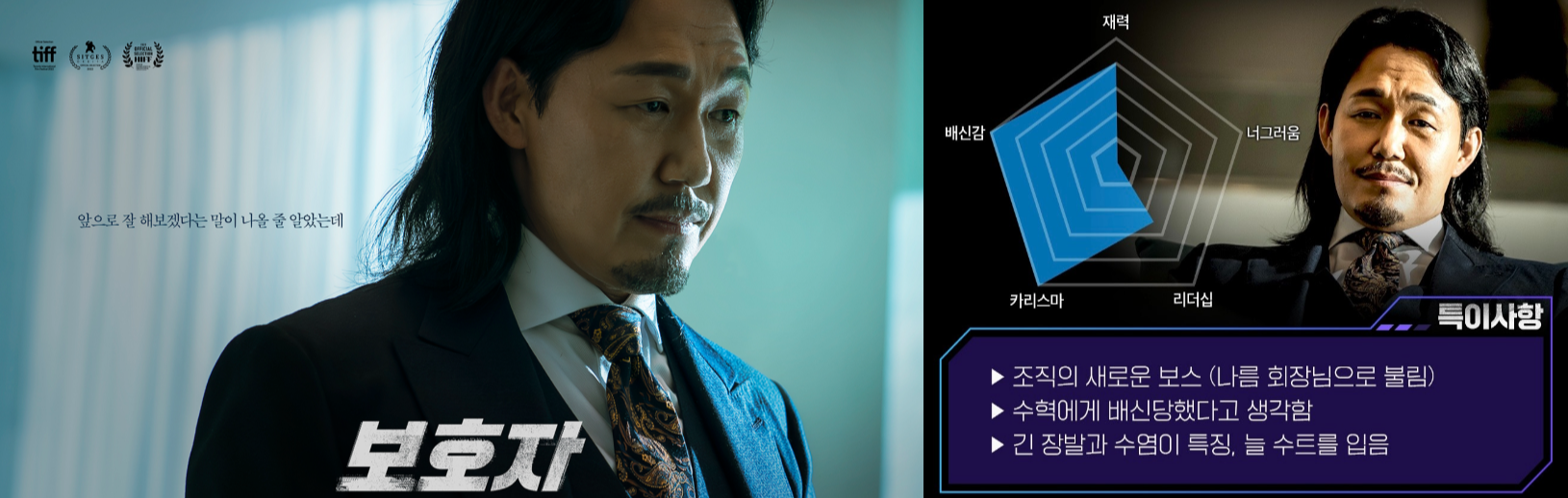 과거 수혁이 몸 담고 있던 조직 내 2인자이다. 수혁에 대한 질투심으로 우진에게 수혁의 살인 의뢰를 맡긴다.